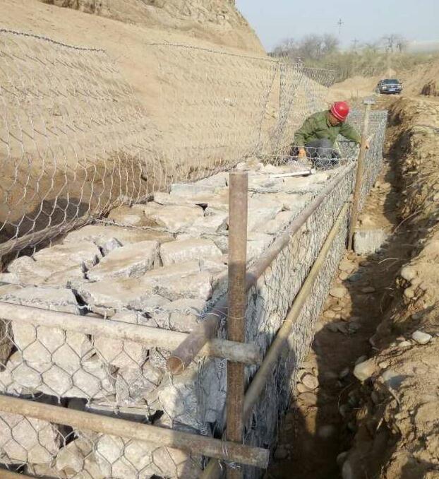 石籠護坡網(wǎng)石籠護坡的結(jié)構 昊昌石籠網(wǎng)是由高抗腐蝕性、高強度、具有延展性的低碳鋼絲或者包覆PVC的以上鋼絲,使用專業(yè)機械雙絞擰花編織而成,使用該網(wǎng)制作成的箱型結(jié)構就是石籠.